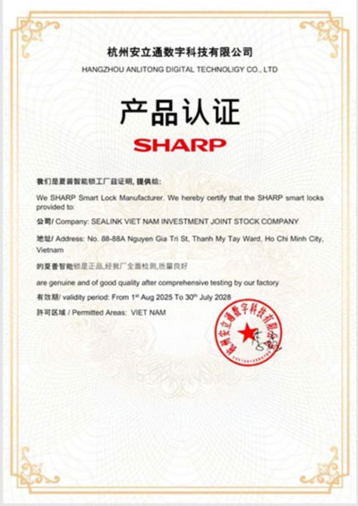 SEALINK VIỆT NAM TỰ HÀO LÀ nhà phân phối ủy quyền chính thức của SHARP SMART LOCK tại Việt Nam