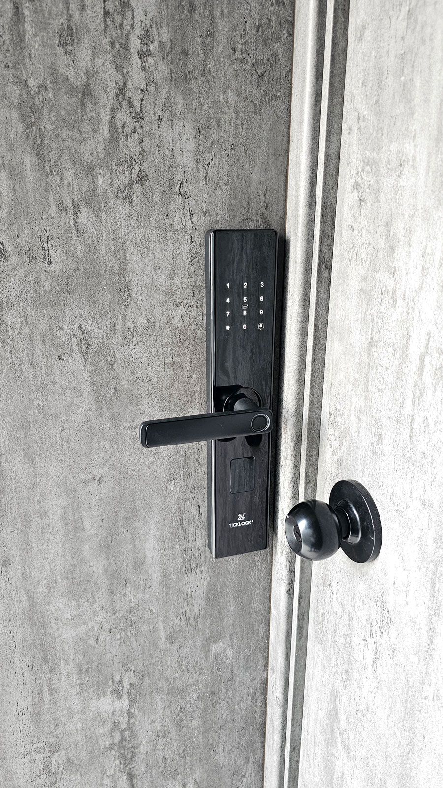Khóa vân tay TICKLOCK Z13 – Tay gạt full đen mạnh mẽ, mở khóa bằng TTLock tiện lợi