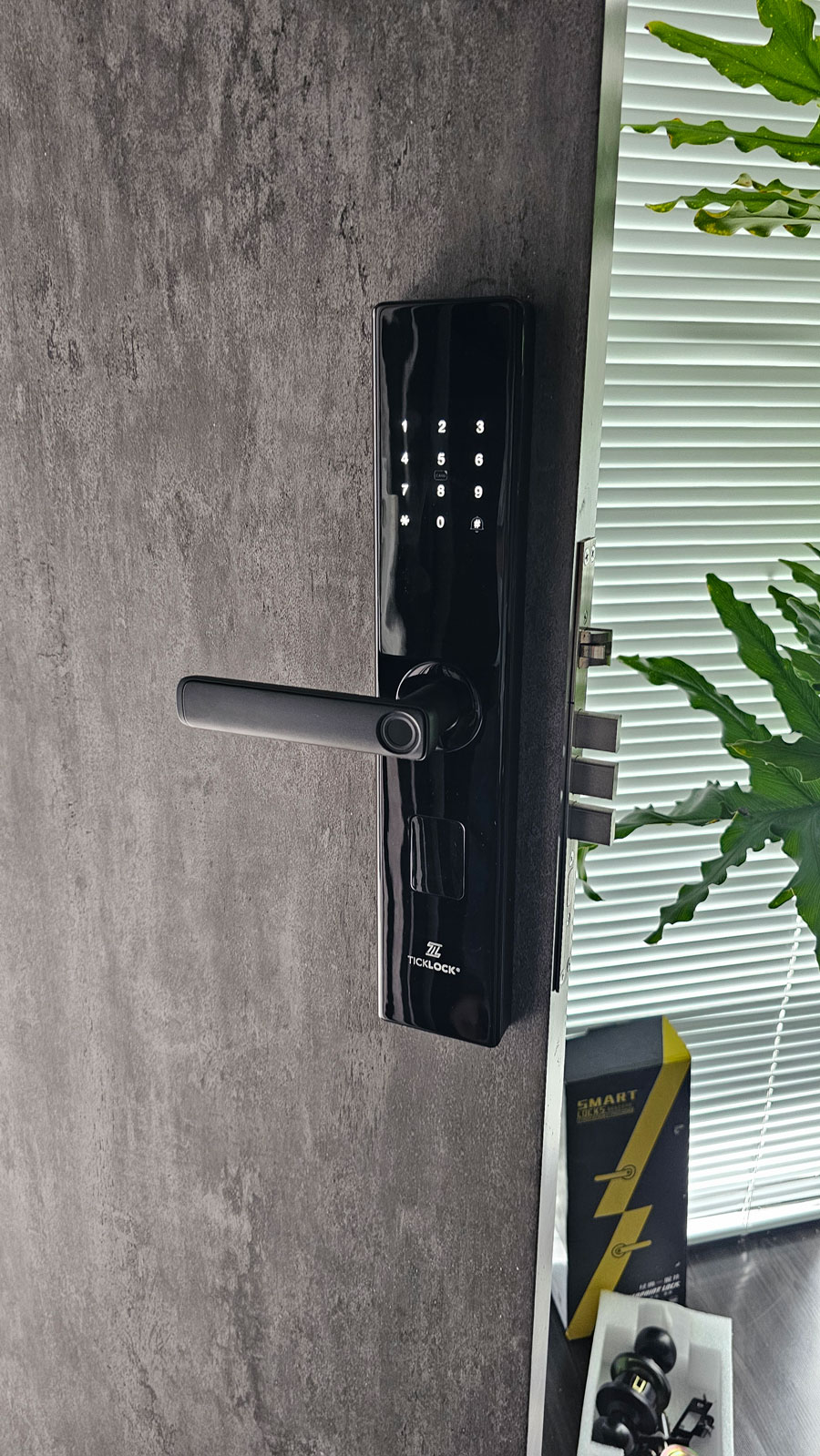 Khóa vân tay TICKLOCK Z13 – Tay gạt full đen mạnh mẽ, mở khóa bằng TTLock tiện lợi